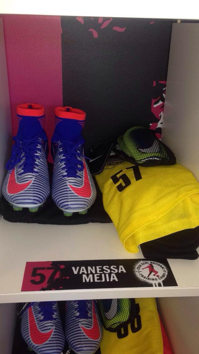 This was my first trip flying solo and being alone at a camp/try-out that took place in Portland OR. I was met by a NIKE representative holding an iPad with my name on. It was so cool to see her holding my name! From the airport we headed to the university of Portland where I got my bag for the weekend and campus badge. Once everyone arrived, we were escorted to where our training gear was located and there it was a sign with the words “2016 ECNL id2 NATIONAL TRAINING CAMP” (my jaw dropped seeing all the gear). I saw my locker and there was my name and assigned number was with my new boots and training gear.