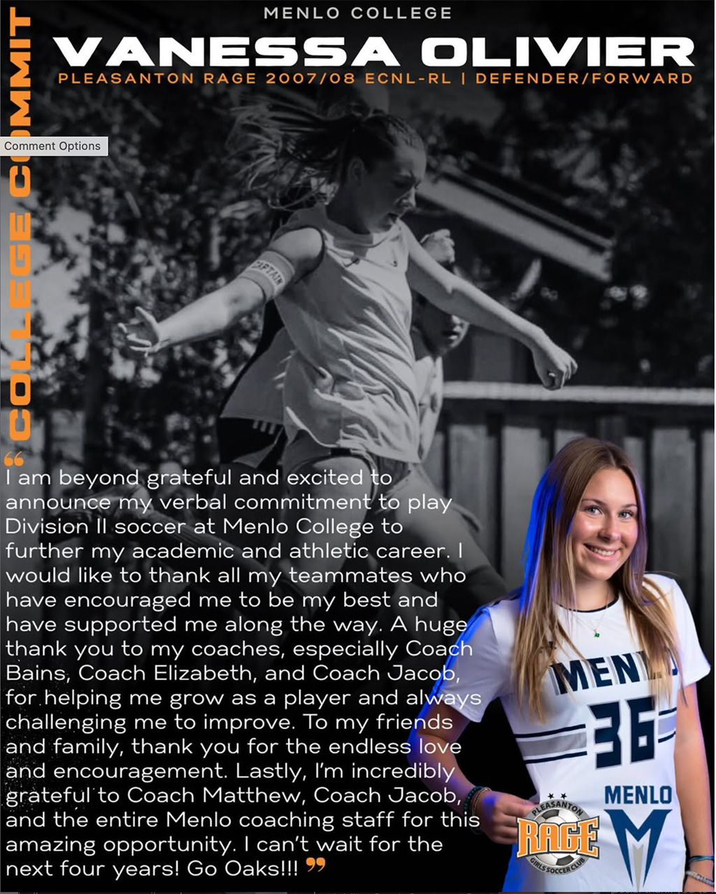 | Olivia Sams | Menlo College |