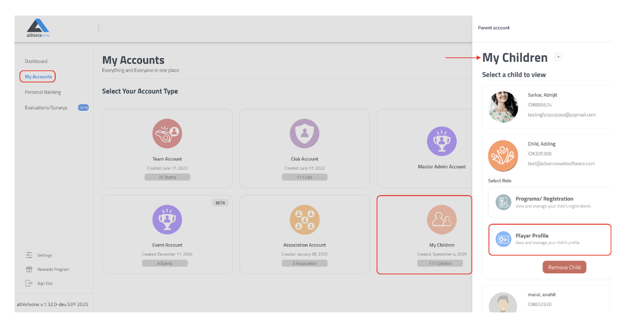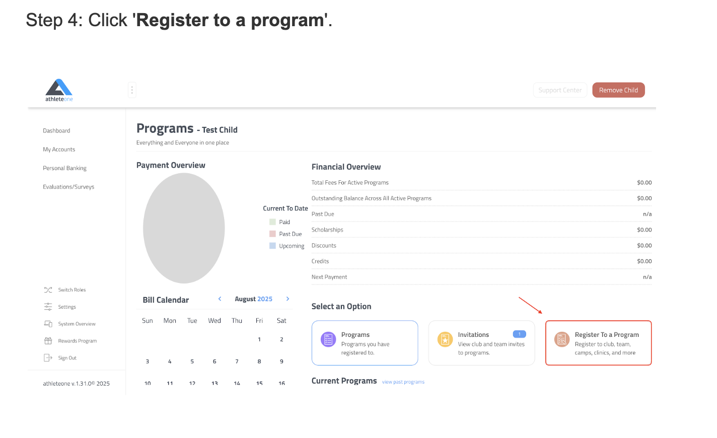 Step 1: Login to your athlete one parent account (same as your TGS account that you used to register for the 2025 season) – Click Here