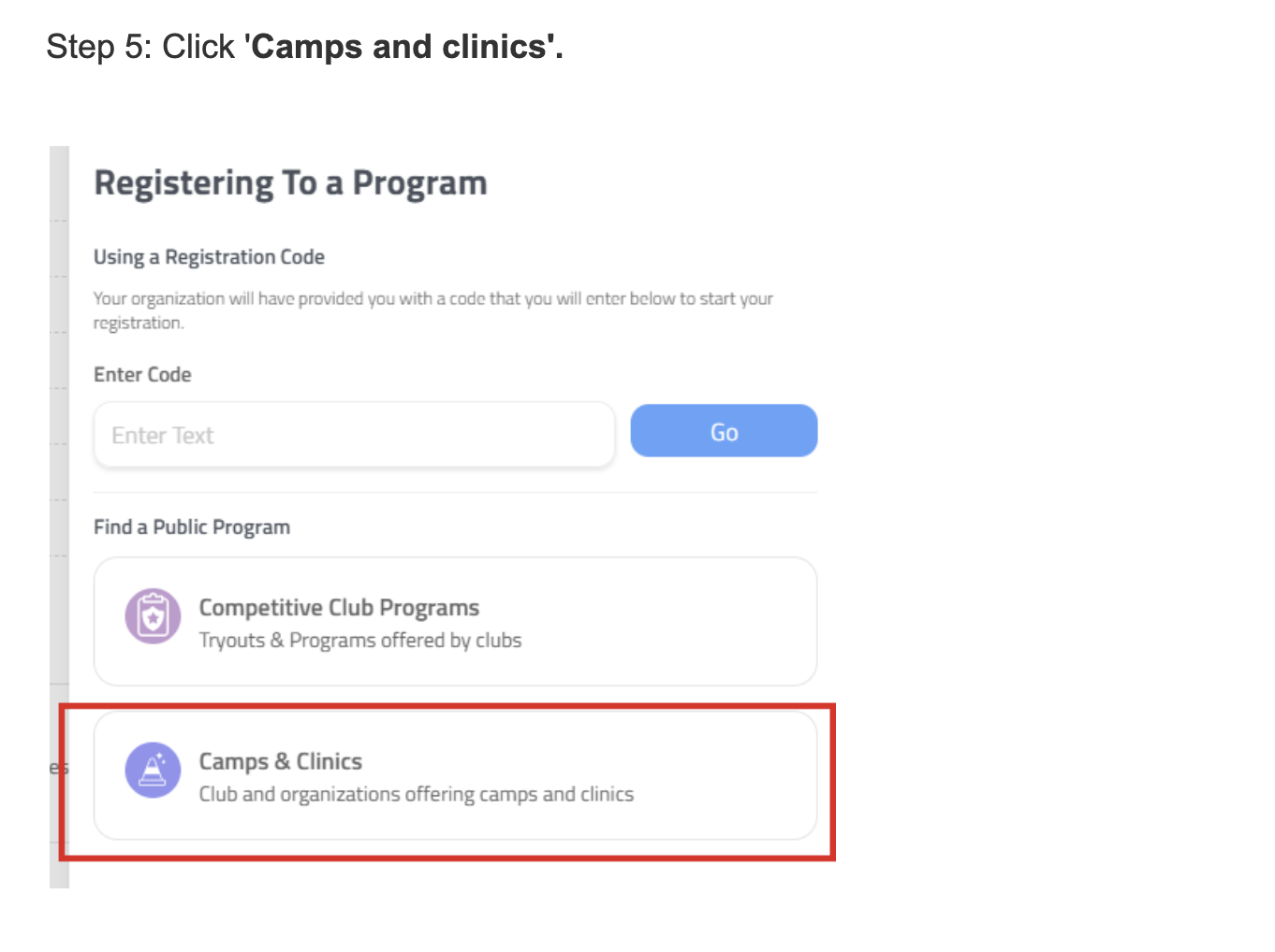 Then see this doc for steps 2 – 7, camps and clinics – how to register.